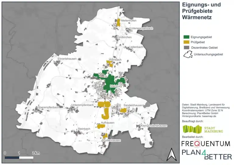 Außerdem wurden mögliche Gebiete für ein Wärmenetz vorgeschlagen. Als Ergebnis für die sogenannten Eignungsgebiete wurden das Gebiet „Mainburg Zentrum“ ermittelt. Dort gibt es größere Wärmeabnehmer, sogenannte Ankerkunden, wodurch sich die Einrichtung von Wärmenetzen wirtschaftlich lohnen könnte. Zudem kommen als Prüfgebiete „Wambach“ und das Gewerbegebiet im Süden ins Gespräch. Ob und wie solche Netze realisiert werden, müssen weitere Machbarkeitsstudien zeigen.